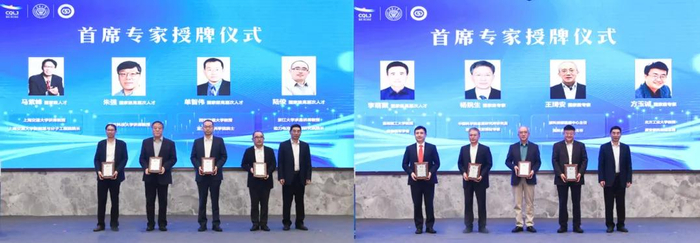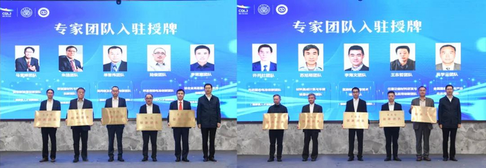 ▲ 中国工程院院士、储能研究院院长潘复生为明月湖实验室引入的马紫峰、朱强、单智伟、陆俊李萌蘖、杨院生、王琦安、方玉诚10位首席专家授牌。
