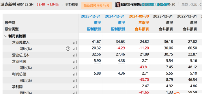 其次看看金天钛业第三客户——派克新材 (去年贡献了金天钛业9.5%的营收),今年前三季度派克新材净利润同比下降42%;