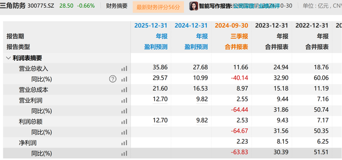 首先看看金天钛业第二大客户——三角防务 (去年贡献了金天钛业约20%的营收),今年前三季度,三角防务净利润同比下降64%。