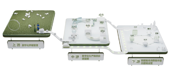 上游:在鄂尔多斯自建牧场鄂尔多斯集团源牧场以养殖、繁育、科研为核心内容,建立数字化运营管理平台,追踪记录并可视化展示牧场环境、养殖、繁育、科研等大数据,实现羊只的全生命周期数据管理。同时,不断完善数据模型,逐步形成优质阿尔巴斯羊生态、可持续养殖模型。