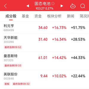 近期市场“炒新”再度火爆,机器人、固态电池、BC电池等新兴产业方向关注度急速提升。昨日电池板块大幅飙升,今日固态电池概念再度掀起涨停潮。