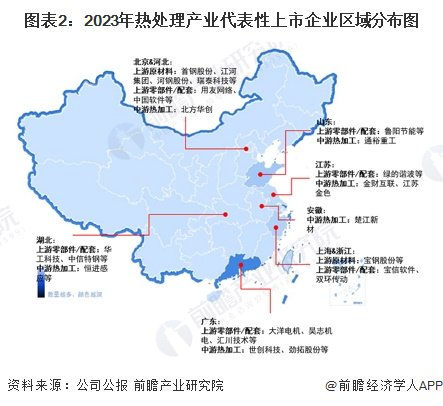 从代表性企业分布来看,热处理产业代表性企业主要分布在北京、广东、山东、江苏等省市。此外,湖北、浙江、上海等地亦有代表性上市公司。