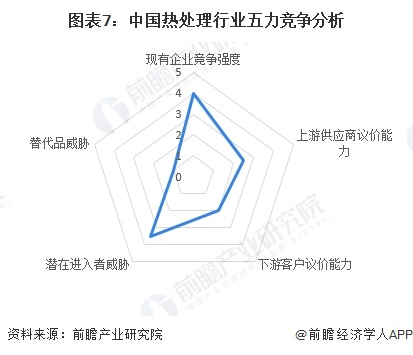 根据以上分析,对各方面的竞争情况进行量化,5代表最大,0代表最小,目前我国热处理行业竞争状态总结如下: