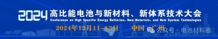 2024高比能电池与新材料、新体系技术大会”将于20241212-13日在广州市举办。