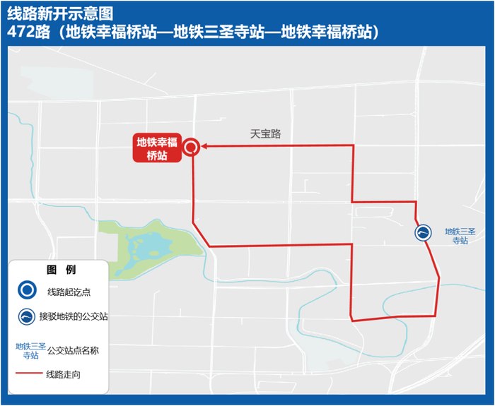 为进一步方便幸福桥片区市民通勤、通学,拟新开472路,强化地铁5号线幸福桥站、27号线地铁三圣寺站间的公交接驳,满足沿途市民的出行需求。