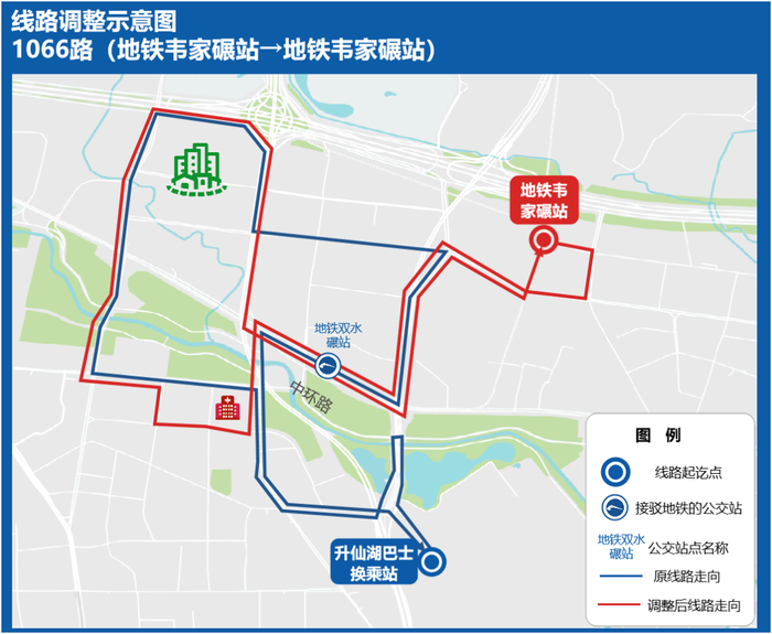 为方便王贾片区市民前往地铁27号线、地铁1号线换乘,同步强化八里桥路、青冈北路周边公交线网覆盖,拟将1066路起讫点调整为地铁韦家碾站-地铁韦家碾站,满足沿途市民的出行需求。