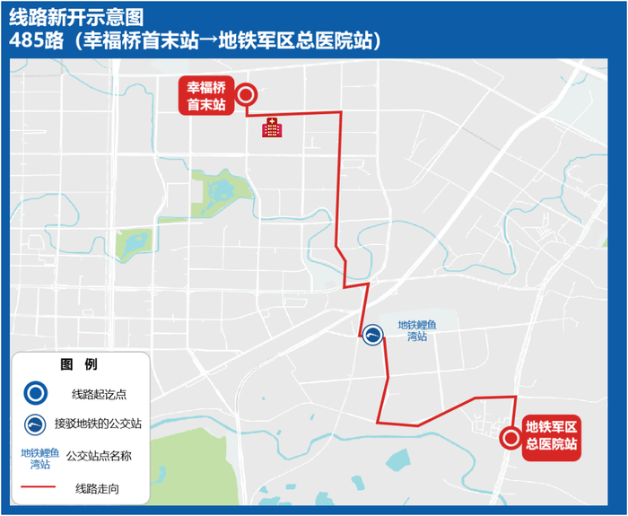 为服务中铁产业园、北斗产业园、金牛高新产业园等产业园企业通勤,拟新开485路,强化地铁3号线、5号线、27号线公交接驳,满足沿途市民的出行需求。