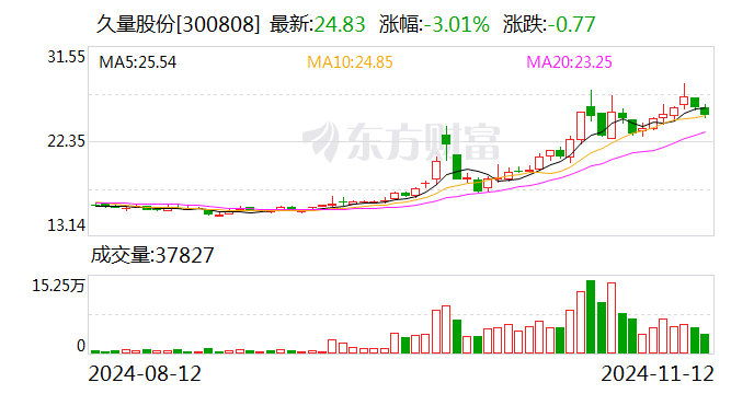 2024年前三季度,久量股份实现收入3.17亿元,归母净利润-1567万元。