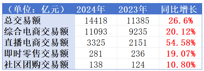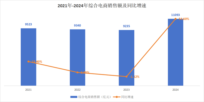 2024年综合电商销售额11093亿元,同比增长54.60%。