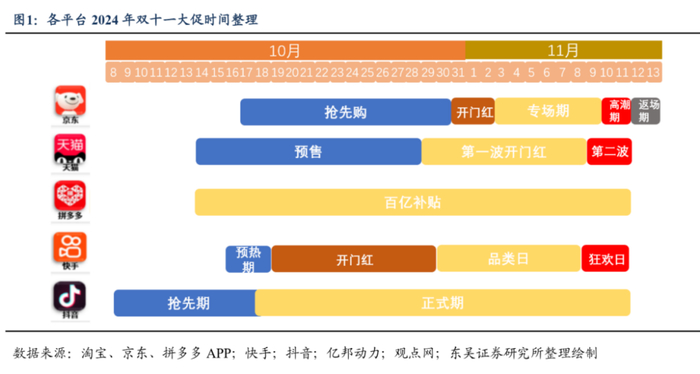 淘宝天猫提前10天、京东提前11天,拼多多提前6天,抖音提前10天,快手提前2天。