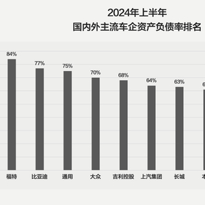 汽车行业是重资产行业的典型代表。从全球范围来看,各大跨国汽车制造商均处于较高的资产负债率水平。2024年上半年, 福特汽车 负债率为84%, 通用汽车 和大众分别达到75%和70%。
