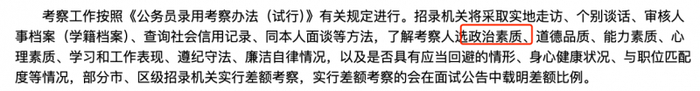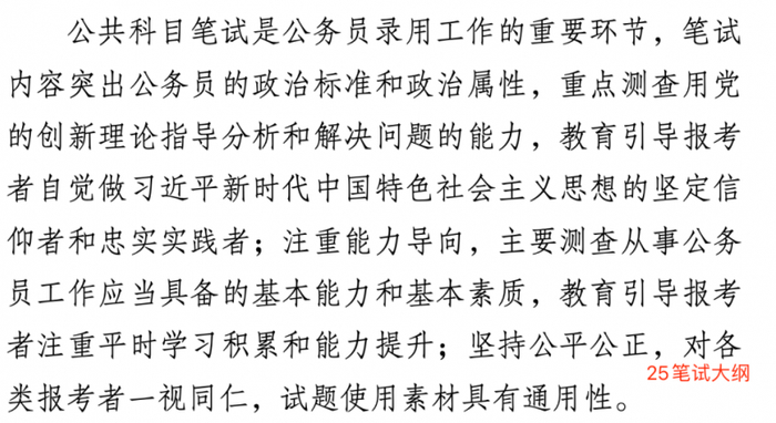 2025京考公共科目笔试大纲明确公示:笔试内容突出公务员的政治标准和政治属性。值得注意的是,同2025年国考一致,北京市考的行测科目也增设了“政治理论”部分,主要测查报考人员学习理解掌握党的创新理论及党和国家方针政策的能力,该部分均为单项选择题。同时,考察工作环节也明确要重点审查入审环节人员的政治素养。