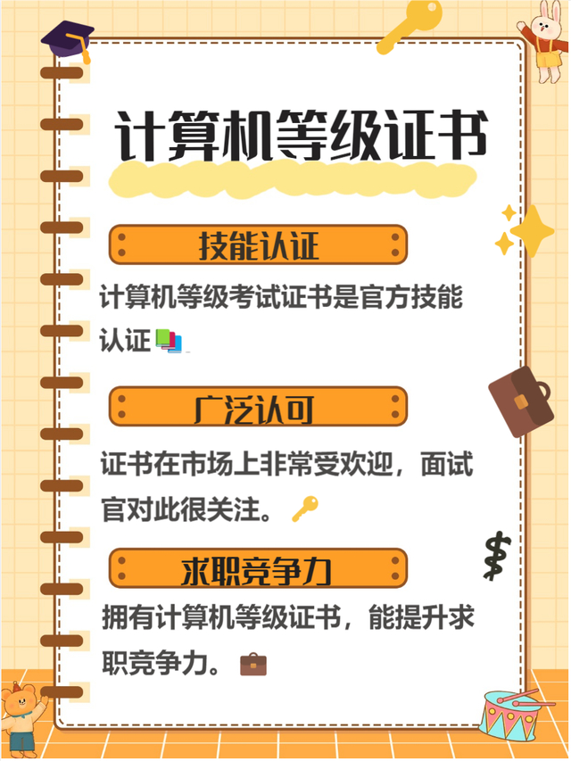 - 1️⃣ 技能认证 :计算机等级考试证书是对你计算机技能的官方认证。📚