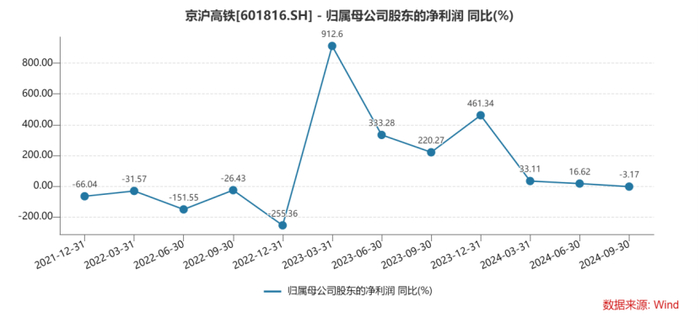 从前三季度数据来看,京沪高铁依然在增长,实现营收323.55亿元,同比增4.77%;归母净利润100.15亿元,同比增12.35%。