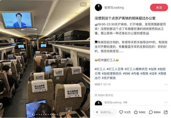 社交媒体上,关于“京沪高铁班味”的生动描述数不胜数。