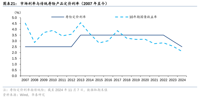 2013年传统险定价利率被上调至3.5%,开启了近十年传统险(非分红)的快速发展。2015年分红险定价利率被放宽至3.0%。