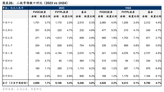 中报显示1H24上市公司的“收息策略”规模稳步增长。“收息策略”要求投资标的股息稳定、资本亏损概率不大、股息率达到一定标准。基于2023年数据,我们估计全行业传统险账户欠配规模在5000-9000亿元人民币,可能在未来三年逐步完成配置。每年传统险账户还有大约1000亿人民币左右的新增资金。此外,分红万能账户也可能配置“收息策略”,但规模可能较不确定。
