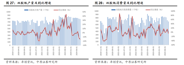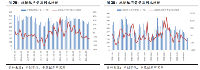 2024年9月,双铜纸月度产量为34.82万吨,同比下降14.97%;2024年9月,双铜纸月度消费量为17.02万吨,同比下降37.88%。