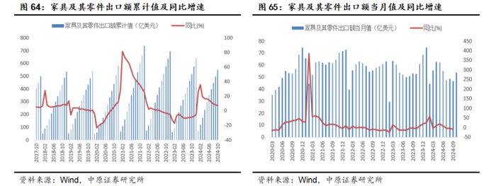 家具出口累计金额增速继续收敛,出口仍保持增长但增速下滑。2024年10月家具及零件出口金额53.88亿美元,1-10月家具及零件出口金额累计549.32亿美元,同比增长7.2%,增速继续收敛。