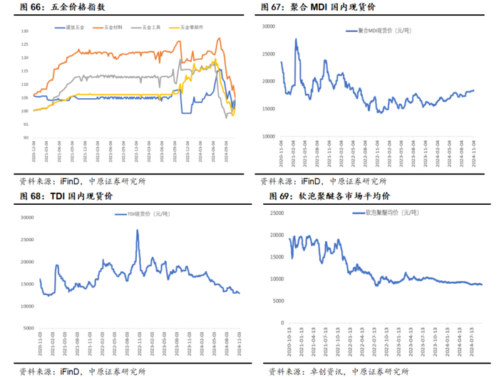 截至2024年10月31日,聚合MDI国内现货价为18283元/吨,较上月末+0.92%;TDI国内现货价为13100元/吨,较上月末+0.38%。