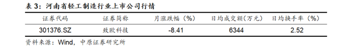 截至2024年10月末,轻工制造行业沪深两市在河南省有1家上市公司致欧科技(301376.SZ)。