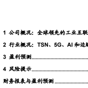 公司在 TSN 领域先发优势明显,享有一定话语权。公司与中国信息通信研究院、紫金山实验室、鹏城实验室联合牵头编写《TSN 解决方案白皮书》,同时参与编制了《5G 全连接工厂建设指导书》《TSN 网络控制系统白皮书》《基于 TSN 的端到端网络演算技术研究》《中国 5G Redcap 应用场景白皮书》等。公司率先研发了 TSN 交换机、TSN 边缘智能网关、TSN 网络接口卡等系列产品,同时,公司深度融合 IT、CT、OT 和 DT 技术,针对工业企业“快速低成本实现数字化”的共性需求,推出了HaaS 工业数字化平台在智能制造细分行业的示范性应用,接下来就是规模化推广。