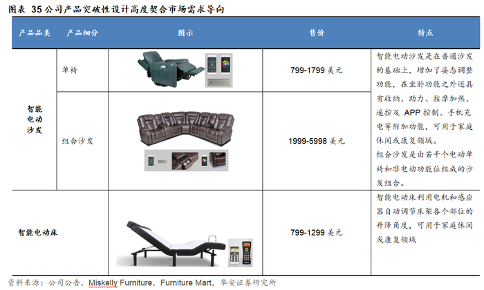 公司是全球智能电动沙发、智能电动床行业重要的ODM供应商。凭借优秀的设计研发、卓越的产品品质和可靠的售后服务,公司已经与Ashley Furniture、Pride Mobility、HomeStretch、Raymours Furniture、R. C. Willey 等国际知名家具企业建立了良好的长期业务合作关系。同时,公司拥有MotoMotion、MotoSleep、MotoLiving、HHC、Yourway等具有一定国际知名度的自主品牌,大力开展自主品牌业务。截至2024H1,公司已在美国零售商客户的门店内建成了100多个小规模的店中店,迈出了“在海外建设自主品牌”的第一步。