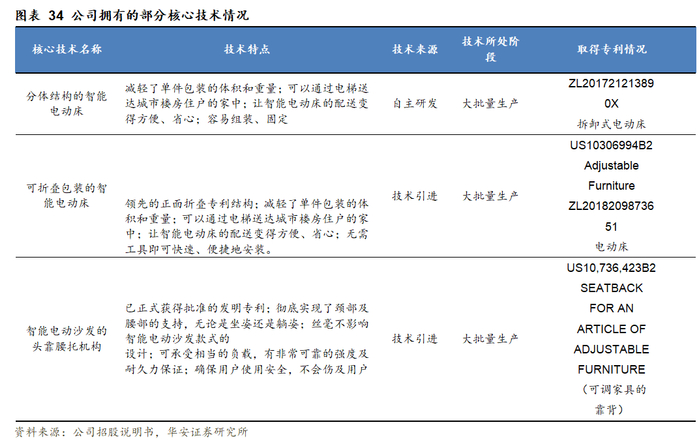专利群完善,技术沉淀创新性转化。公司专利群完善,截至2023年6月底,公司共拥有620项境内外授权的专利及215项尚在申请中的专利。公司紧密追踪市场趋势,成功将多项前沿技术转化为创新性产品,公司精心设计并研发的可折叠式智能电动床和配备头靠腰托功能的智能电动沙发,这两款产品不仅开创了市场新潮流,也获得了消费者的普遍赞誉。依托于公司完善的研发架构、资深的研发团队以及扎实的技术积累,公司将持续推出引领行业风尚的新产品。