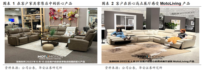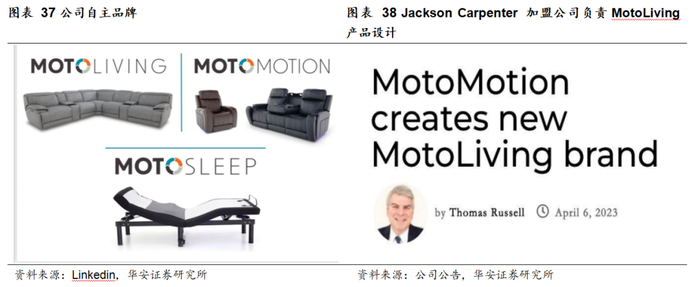 推进自有品牌塑造,推出MotoLiving高端品牌。自2015年7月首次推出自家设计的两款产品以来,公司已经成功地将自主研发与生产的家具销往美国前100大家具零售商中的30家。公司的自主品牌包括MotoMotion、MotoSleep、HHC、Yourway等,专注于智能电动沙发、智能电动床和智能家具配件等领域。2023年4月,公司第一次在高点展会推出了MotoLiving品牌,这一系列产品以其卓越的外观设计、精选材料、先进功能和创新元素而备受瞩目。MotoLiving系列由美国市场上享有盛誉、具有强大影响力的软体沙发设计师Jackson Carpenter亲自操刀设计,Jackson 开发的全新系列产品不仅可以为公司引进全新的客户,使得公司产品进入新的市场,还可以同时帮助提高公司在设计和产品方向上的整体水平。公司将在家具行业中继续巩固其领导地位,并吸引更多寻求高端家具解决方案的消费者。