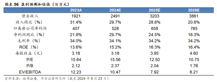 公司一方面作为全球智能电动沙发、智能电动床行业重要ODM供应商,拥有长期稳定的客户资源,海外产能布局充分,供应链一体化布局完善,市场份额有望持续提升;另一方面,公司积极推进自有品牌塑造,通过“店中店”模式深化渠道建设,自有品牌有望贡献业绩增量。我们预计公司2024-2026年营收分别为24.91/32.03/38.61亿元,分别同比增长29.7%/28.6%/20.6%;归母净利润分别为5.28/6.58/7.65亿元,分别同比增长29.7%/24.5%/16.3%。截至2024年9月23日总股本及收盘市值对应EPS分别为3.18/3.95/4.60元,对应PE分别为15.56/12.50/10.75倍。