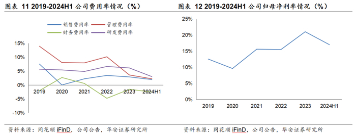 重视研发投入,净利率呈提升趋势。近年来,公司重视新产品开发,研发投入不断增加,从2019年的0.67亿元增长至2023年的1.17亿元,研发费用率由5.68%提升至6.13%。随着经营规模效应的显现和组织效率的提升,公司销售费用率由2019年的7.52%下降至2023年的2.90%。叠加汇兑损益贡献,公司净利率由2019年的12.54%提升至2023年的21.02%。