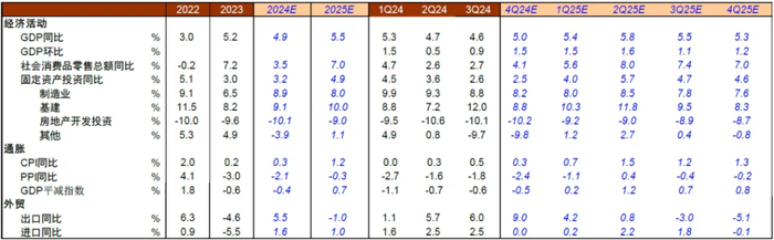 ► 2025年预测的不确定性较大。内部来看,主要是逆周期政策力度与投向,以及传导效果。在经历连续接近4年房地产价格调整以及较长时间的低通胀之后,居民、企业部门的预期总体相对偏弱,如果政策宽松力度较大叠加预期改善共振,经济表现可能好于预期,反之则相反。外部来看,美国通胀与其贸易政策不确定性较大,对出口带来较大扰动。这些变化需要继续观察。