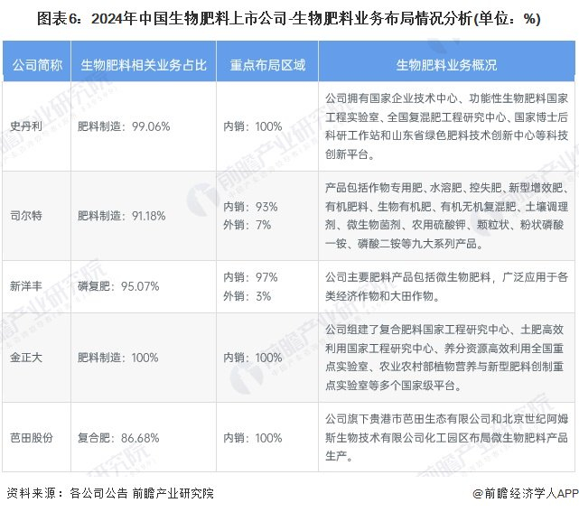4、中国生物肥料行业上市企业布局及竞争力评价