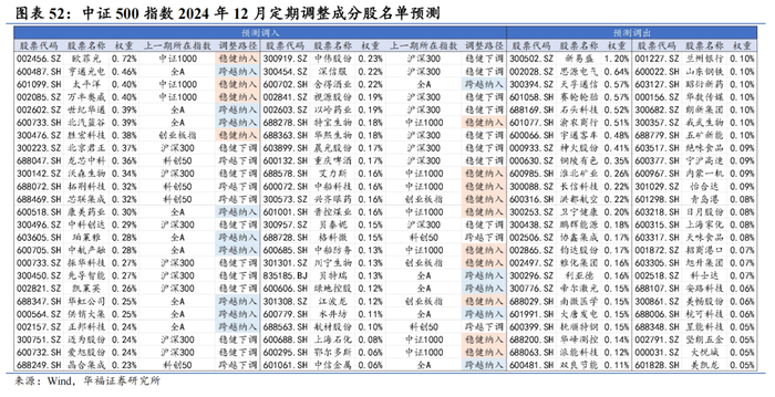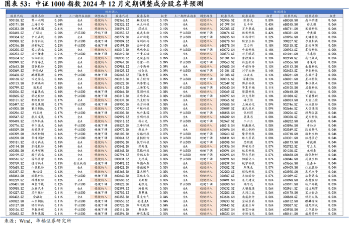 根据指数编制测算,预计中证1000指数本次12月份定期调整更换94只成分股样本,成分股调整名单如右表所示: