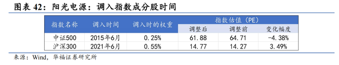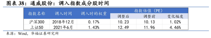 通威股份于2021年6月调入上证50指数,与宁德时代相似,权重较大的成分股较晚时间加入指数,在2021年后资管新规时代背景下给指数带来负向的定价冲击。