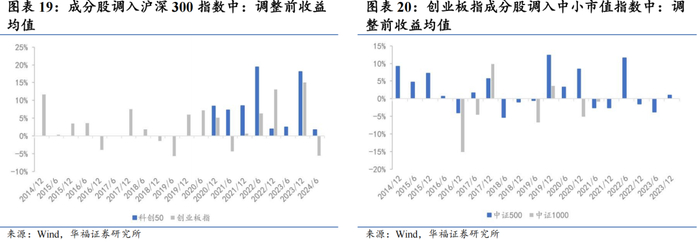 创业板、科创50指数涵盖新兴产业、高新技术企业占比高的企业,这类企业通常成长性较优,高增速将阶段实现个股市值扩张至市场排名前位,成分股调整的事件驱动个股收益上升更显著。