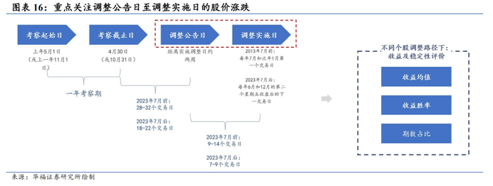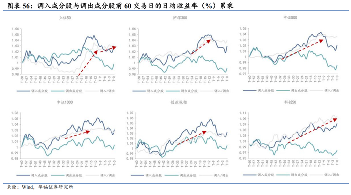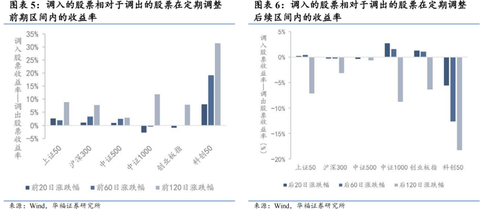 对比调出的成分股与调入的成分股在定期调整前后短期区间内的收益差。