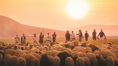 落日时分,《燃烧的月亮》女嘉宾们集体赶羊回羊圈。