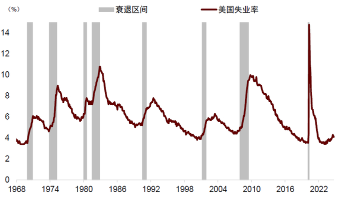 因此我们认为美国就业市场后续存在非线性转弱风险,就业韧性可能在未来走弱。事实上,在失业率上升触发萨姆准则后,历史上失业率无一例外大幅上涨,美国经济无一例外走向衰退。