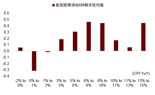 图表6:美国经验表明,CPI在3%下方运行时股债相关性为负