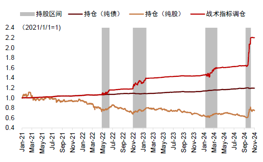 图表17:我们使用战术方法进行调仓,自2021年以来相对纯债指数存在明显超额收益
