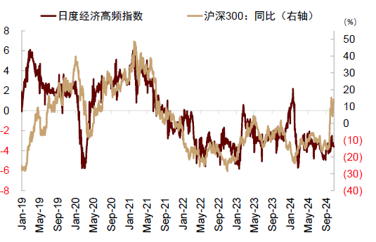 增长和通胀是影响资产走势的主要宏观因子。当其他因素不变时,增长上行改善盈利预期,提振风险情绪,此时股票涨债券跌,股债呈负相关;增长下行避险情绪升温,股票跌债券涨,两种资产走势相反,股债仍然呈负相关。当其他因素不变时,通胀上行形成流动性紧缩预期,导致股债同跌,反之通胀下行股债同涨,股债呈正相关。因此,增长与通胀分别对应股债走势负相关与正相关。疫情前我国股债相关性长期以零值为中枢上下波动,或反映增长与通胀影响势均力敌。疫情之后股债相关性转负,一度接近-40%,可能反映经济进入低通胀时代,增长预期主导市场主线。近年股债走势与反映增长因子的高频经济活动指数高度一致,验证了上述观点。