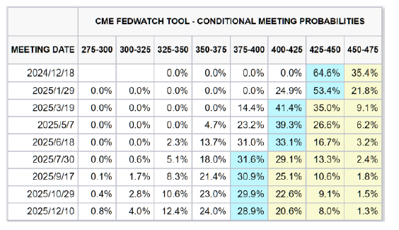 如果上述特朗普政策快速落地,导致通胀在2025年反弹,我们认为美联储有可能在2025年放缓或暂停降息,甚至不排除加息的可能性。事实上市场已经开始计入这种可能性:尽管美联储9月散点图显示2025年还会降息100bp,但联邦期货市场显示美联储降息周期会在2025年6月结束,累计降息150bp至3.5%。