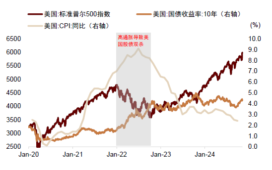 另一方面,尽管美国通胀已经回落至美联储目标水平附近,但如果特朗普政府采取了更加激进的措施,刺激经济增长,或对进口商品大幅加征关税,推动美国通胀上行,美债利率也可能再度回升,进一步推高市场波动。