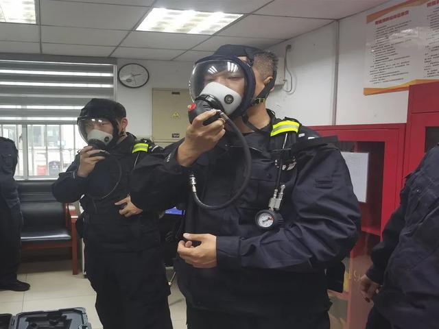 消防队员全员参与过滤式消防呼吸器培训,并按要求佩戴,增强在复杂环境下的自我保护能力。