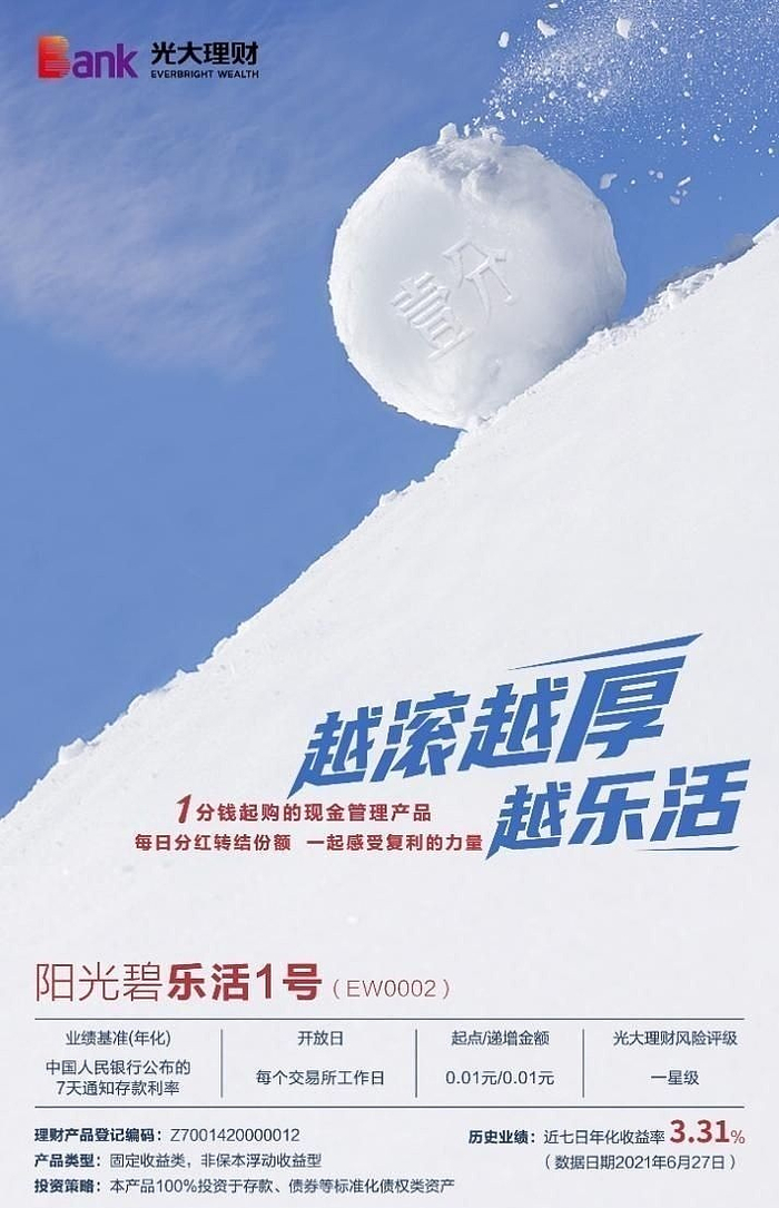 早在2020年4月,光大理财就创新推出了行业内首只1分钱起售的理财产品——阳光碧乐活1号,通过主动降低起购金额门槛让更多的投资者能够公平地享受银行理财公司的专业财富管理服务,并取消认购费、赎回费,将管理费率、销售服务费设置为0.2%,更好地助力普惠理财业务发展,目前该产品已经服务了近13万名投资者,践行了中管金融企业子公司服务千家万户和普通老百姓的职责和社会担当。