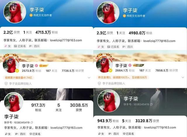 11月12日下午,李子柒在抖音上的粉丝数是4713.3万,微博粉丝数为2573.9万,快手为917万。而11月13日清晨,三家平台的粉丝数分别增至4980万、2664.1万和943.9万。