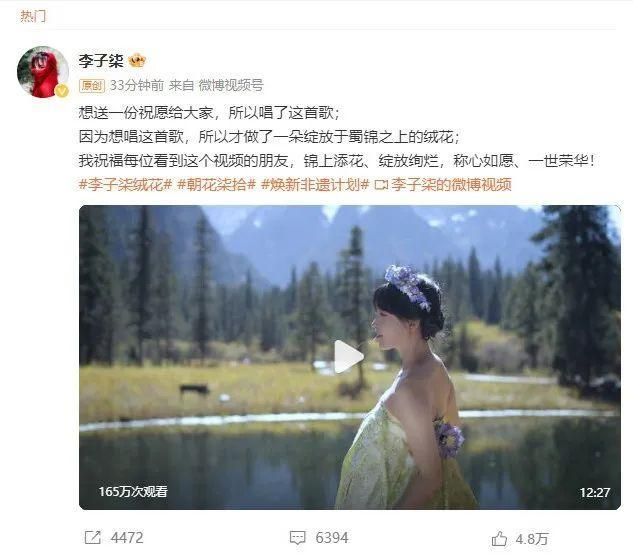 刚刚,李子柒再次更新!回归24小时内连更3条,穿蜀锦自弹自唱
