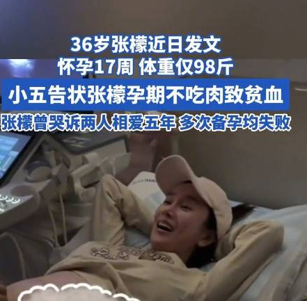 35岁张檬公开分享喜讯:看到胎动激动落泪!自爆怀孕17周体重只有98斤,曾多次哭诉备孕失败