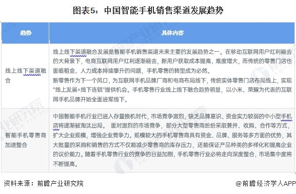 未来,中国智能手机销售渠道将呈现线上线下渠道加速融合、零售商加速整合等趋势。
